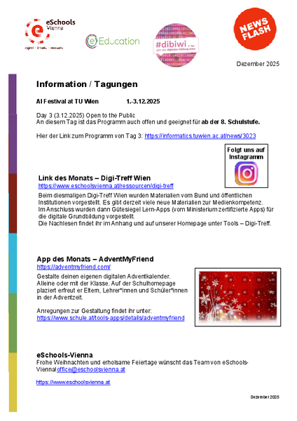 Frohe Weihnachten und erholsame Feiertage wünscht das Team von eSchools-Vienna!office@eschoolsvienna.at